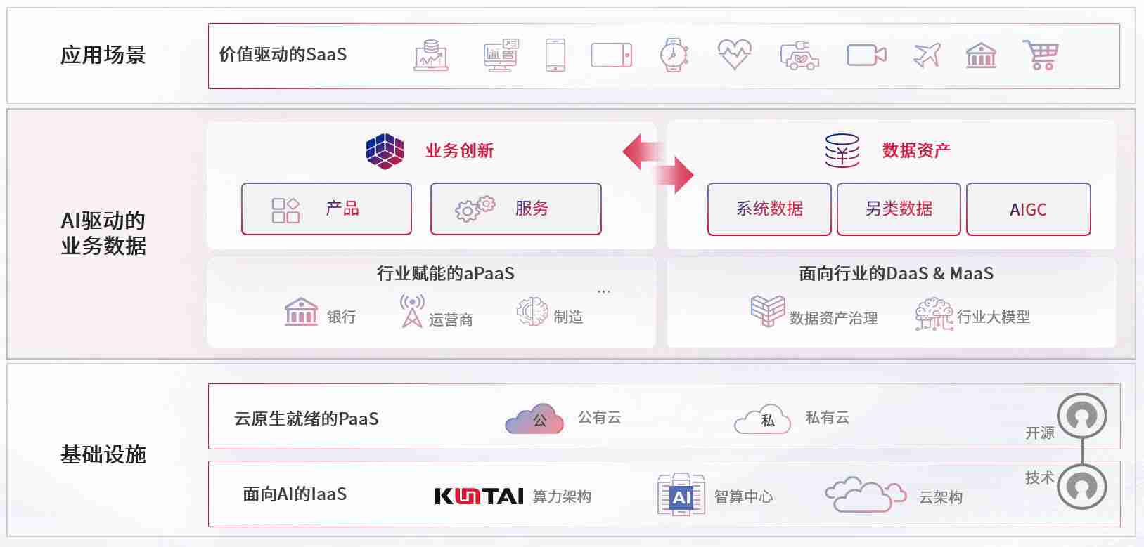 数字时代,,,围绕企业数字化转型的关键要素,,,NG娱乐数码开创性的提出“数云融合”战略和技术体系框架,,,,着力在云原生、、、、数字原生、、、、AI原生和信创产业上架构产品和服务能力,,,为处在不同数字化转型阶段的快消零售、、汽车、、金融、、、医疗、、、、政企、、教育、、、、运营商等行业客户提供泛在的敏捷IT能力和融合的数据驱动能力,,,,构建跨界融合创新的数字业务场景和新业务模式,,,,助力企业级客户建立面向未来的核心能力和竞争优势,,,全面推动社会的数字化、、、、智能化转型升级。。。。